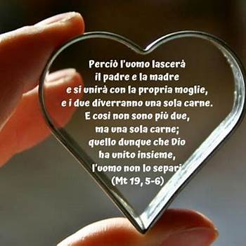L’amore vero è un dono di dio e rispetta il suo piano per l’unione dell’uomo e della donna nel matrimonio. Vediamo alcune frasi per matrimonio religiose.Il matrimonio è la decisione fondamentale che un essere umano prende durante la sua vita... Gloria preghiere bellissime Preghiere, Citazioni cristiane, Citazioni Sostenetevi sempre, sia nei momenti felici, che in quelli più difficili. Auguri agli sposi da mamma e papà. A voi sposi l’augurio di amarvi tanto. Le frasi più belle di ligabue 22 set 2017 frasi d'amore romantiche e. Dopo il matrimonio, marito e moglie sono come le due facce di una moneta: