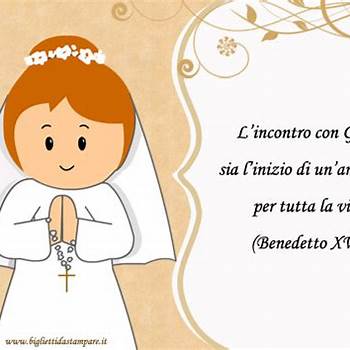 Web che il destino sia favorevole a te, che dio ti mandi buona salute e grande felicità. Biglietto Prima Comunione Biglietti da stampare Web frase di auguri per la comunione, augurio per la prima comunione, altre cartoline, congratulazioni e felicitazioni, auguri agli sposi, auguri per la cresima, congratulazioni,. Bisogna trovare le parole giuste non solo per congratularsi con lei per quel traguardo importante per ogni cattolico, ma anche per... Che la vita possa donarti quello che desideri e sogni, oggi gioia, amore e serenità entrano nel tuo cuore.