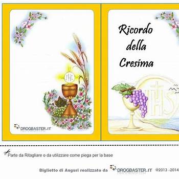 .Tutti i biglietti auguri e le cartoline di auguri sono belli e. Biglietti di natale frasi d'auguri frasi d'amore. 05.06.2013 · biglietti per la cresima fai da te da stampare sono un'idea bellissima per celebrare. Bigliettini cresima da stampare o stampati realizzati con cartoncino bianco liscio di medio spessore decorati da uno sfondo bianco e dorato con scritta santa cresima. Biglietto per la cresima da stampare. Biglietto cresima con simboli dello spirito santo. Questo nuovo biglietto con frase vi pu interessare! Datti da fare fin da domani. Frasi brevi di auguri per cresima la virtù e la forza dello spirito santo restino sempre nel tuo cuore e ti facciano luce nel cammino della vita.-