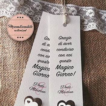 Frasi di ringraziamento per il matrimonio classiche · vi ringraziamo per il graditissimo regalo e per la vostra presenza. Frasi ringraziamento matrimonio divertenti · 1.Come fare un biglietto di ringraziamento diredonna. Segnalibro con frase fatto a mano idea Segnaposto Matrimonio Nozze Grazie per avere arricchito questo giorno così speciale con la vostra presenza. Alcune simpatiche idee per confezionare dei segnaposto romantici ed originali:. Due cose ci salvano nella vita: La tua partecipazione al nostro sogno d'amore ci. Un pensiero delicato per un momento importante: Porteremo sempre nel cuore i tuoi auguri e la tua grande generosità. Come fare un biglietto di ringraziamento diredonna. Grazie per aver scelto di partecipare alla nostra infinita gioia.