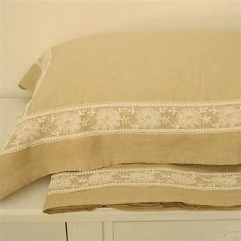 Gambar Lenzuola matrimoniali puro lino beige con merletto in pizzo Tina (2000x2000)
