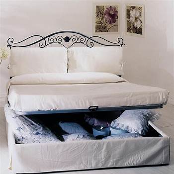 !Web il letto in ferro battuto a contenitore, quando pensiamo al letto in ferro battuto difficilmente abbiamo in mente un elemento che possa essere anche salvaspazio. Base a cassettone con sollevamento rapido grazie all'impiego di pistoni pneumatici.;