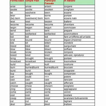 12 Tabella Dei Verbi Irregolari In Inglese Inglese Dinamico